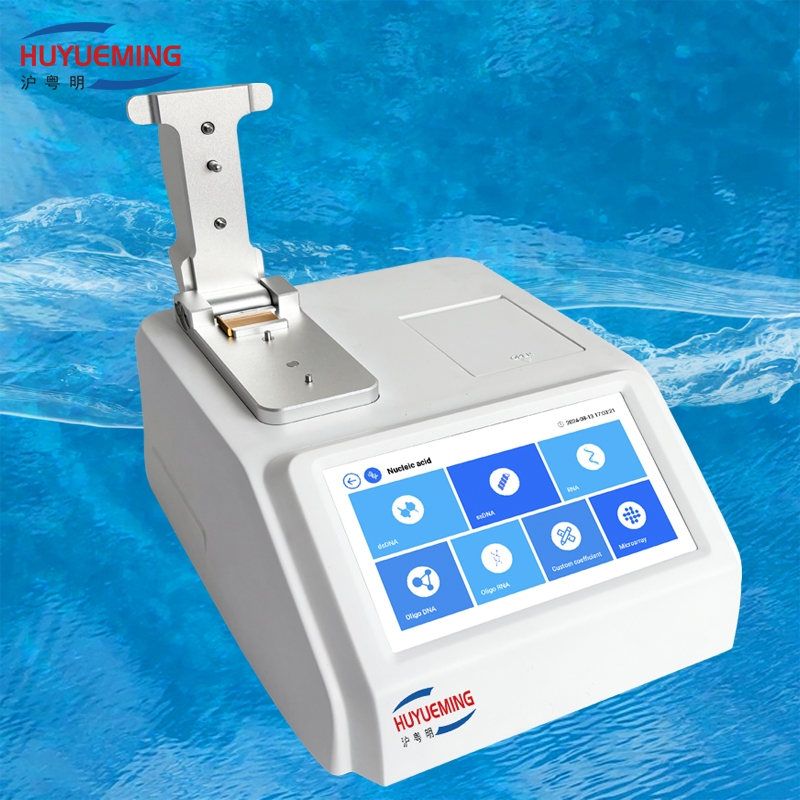 微量核酸蛋白检测仪作为一款高再现性的全波长分光光度计,采用基座和比色皿上样双检测模式, 适用于更宽浓度范围的样品检测,操作简便,不仅可用于测量DNA,RNA纯度、浓度,测量蛋白质浓度,也可用于一般物质分析中的吸光度检测。