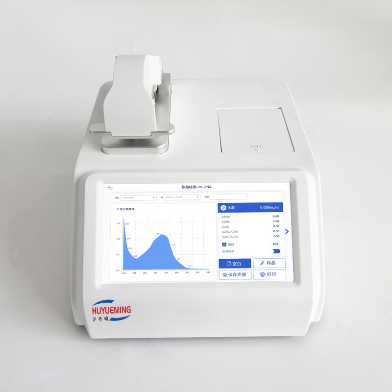 超微量核酸蛋白检测仪作为一款高再现性的全波长分光光度计,采用基座和比色皿上样双检测模式, 适用于更宽浓度范围的样品检测,操作简便,不仅可用于测量DNA,RNA纯度、浓度,测量蛋白质浓度,也可用于一般物质分析中的吸光度检测。