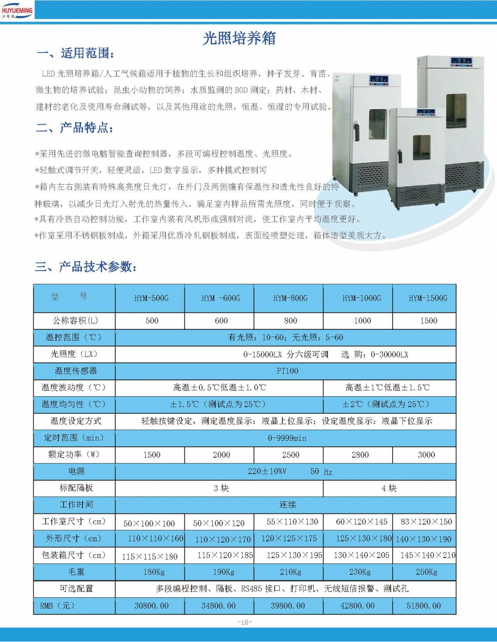 二、光照培养箱HYM-1500G产品特点: